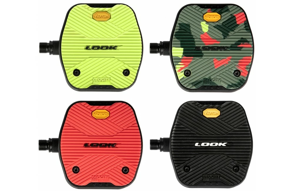 - Des pads interchangeables LOOK Activ Grip by Vibram pour améliorer votre sécurité et booster votre style: Rouge rétro, vert acidulé, noir classique ou crazy camo, soit des pads Activ Grip pour refléter la personnalité de chaque cycliste.
